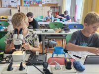 Im MINT Unterricht der 2Mint stand am Ende des Schuljahres die Arbeit mit dem Mikroskop auf dem Programm. Was im Biologie Unterricht mit den ganzen Klassen fast nicht umsetzbar ist, geht im Mint Unterricht mit den beiden Gruppen doch etwas einfacher.