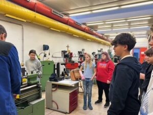 Nach der freundlichen Begrüßung begann eine ausführliche Werkstattführung, die den Schülerinnen und Schülern einen praxisnahen Einblick in die vielfältigen technischen Ausbildungsbereiche der HTL ermöglichte. Die Führung wurde kompetent durch die verschiedenen Werkstätten geleitet, wobei sich die jeweiligen Werkstättenleiter Zeit nahmen, in kompakter Form ihre Bereiche vorzustellen. So erhielten die Jugendlichen einen Überblick darüber, welche Projekte und Inhalte im Laufe eines Schuljahres in den einzelnen Werkstätten erarbeitet werden.