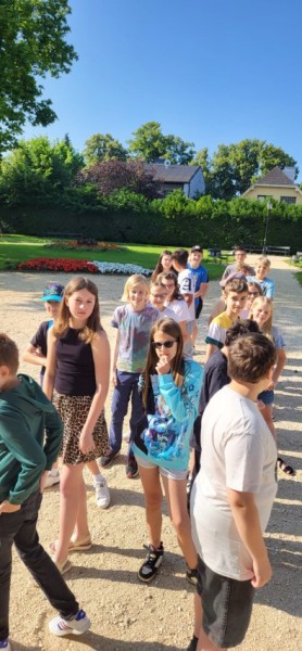 Endlich ist der Sommer da! Die 2MINT nutzte das schöne Wetter und ging mit Herrn FL Schneider und Frau FL Rebler in den Park, um dort eine Deutscholympiade zu veranstalten. Fünf Teams traten in fünf Wettkämpfen gegeneinander an. Aufgewärmt wurde mit einer Runde „Simon sagt“ – man darf sich nur bewegen, wenn vor der Anweisung („Geh in die Knie“) die Worte „Simon sagt“ erklingen, sonst scheidet man aus. Im Anschluss spielten wir ein Fangspiel. Paare standen Rücken an Rücken in einer Reihe. Wir Fachlehrer verlauteten abwechselnd Tun-, Namen-, und Eigenschaftswörter. Beim Namenwort musste der rechte Partner den linken fangen, beim Eigenschaftswort umgekehrt, beim Tunwort durfte man sich nicht bewegen.