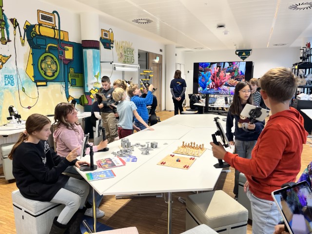 Im Zentrum des Experimentiertages standen interaktive Erlebnisstationen, die digitale Technologien verständlich, greifbar und unterhaltsam vermittelten – von der Welt des Binärcodes bis zum eigenen 3D-Hologramm. Besonders großer Andrang herrschte bei den Mitmachangeboten im gesamten Gebäude.