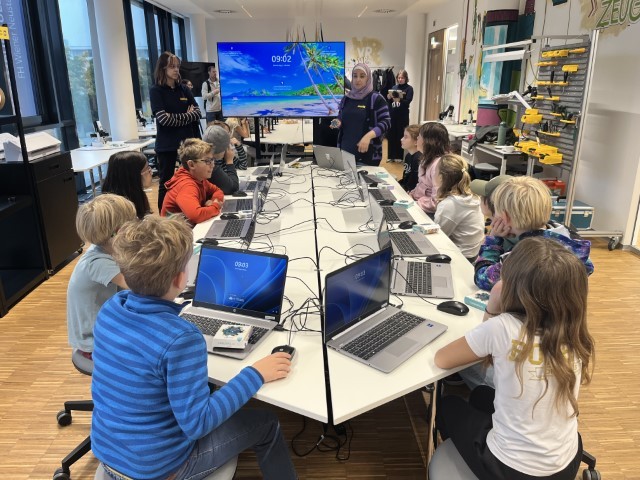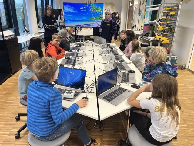 Ein Highlight für Kinder und selbst die Lehrer war die Station der Technologykids: Mithilfe des Zeichenroboters Axi-Draw konnten die Gäste ihre eigenen Kunstwerke gestalten – und dabei erleben, wie Präzision, Kreativität und digitale Steuerung ineinandergreifen. Somit lernten die Kinder auch hier bereits, was mit KI bereits alles möglich ist.