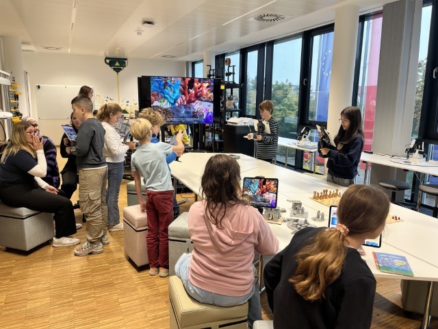 Im Zentrum des Experimentiertages standen interaktive Erlebnisstationen, die digitale Technologien verständlich, greifbar und unterhaltsam vermittelten – von der Welt des Binärcodes bis zum eigenen 3D-Hologramm. Besonders großer Andrang herrschte bei den Mitmachangeboten im gesamten Gebäude.