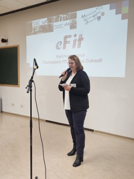 Am Donnerstag, den 23. Oktober von 17 bis 19Uhr fand unser diesjähriger Abend der Offenen Tür statt. Schon zur Eröffnung drängten sich zahlreiche Besucher, Michaela Neruda, Marion Majdan und Jutta Matschl fanden Begrüßungsworte und stellten unsere Schule vor. Justin Timberlake war zwar nicht da, aber zu seinen Melodien sang der Schulchor „Fit und gesund schreiben wir groß, unsre e-Fit Klassen sind einfach famos“ oder auch „Im MINT Bereich, da sind wir top, wir forschen und entwickeln viel und das nonstop“.