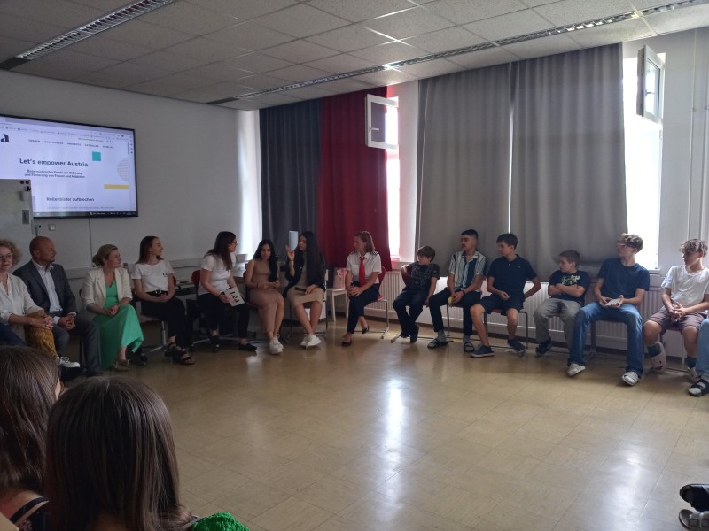 Im Workshop selbst, an dem Schüler:innen der 3. und 4. Klassen teilnahmen, wurden im Gesprächskreis, Gruppenarbeiten und mit Spielen etwa die Begriffsbildung (Stereotype, Rollenbilder, Vorbilder, Klischee,…) hinterfragt. Mit einer Gruppenarbeit sollte die Einteilung in typische Mädchen- und Jungenthemen verdeutlicht und ein Bezug zur eigenen Lebenswelt hergestellt werden.