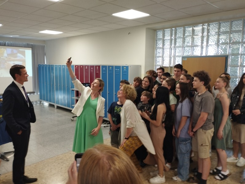Auch Frau Bundesministerin Susanne Raab berichtete etwas über ihren Werdegang und stand den Schüler:innen auch für Fragen zur Verfügung. Einige gemeinsame Fotos und eine kleine Präsentation der Robotics – und MINT – Projekte an unserer Schule rundeten den besonderen Besuch ab.