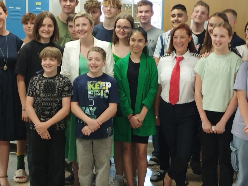 Auch Frau Bundesministerin Susanne Raab berichtete etwas über ihren Werdegang und stand den Schüler:innen auch für Fragen zur Verfügung. Einige gemeinsame Fotos und eine kleine Präsentation der Robotics – und MINT – Projekte an unserer Schule rundeten den besonderen Besuch ab.