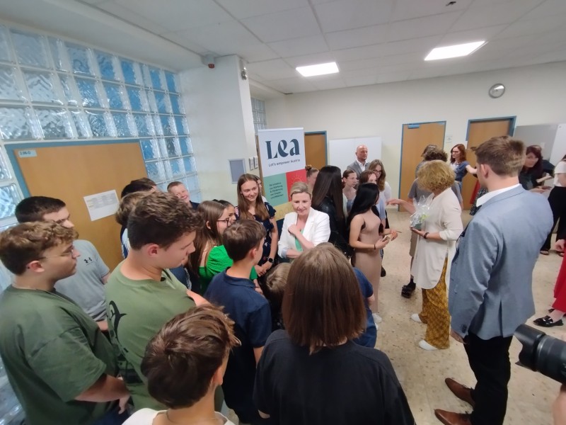 Im Rahmen des offiziellen Niederösterreich-Auftakts erfuhr unsere Schule eine besondere Ehre, nämlich einen LEA Schulbesuch mit Anwesenheit der Frauenbundesministerin Susanne Raab!