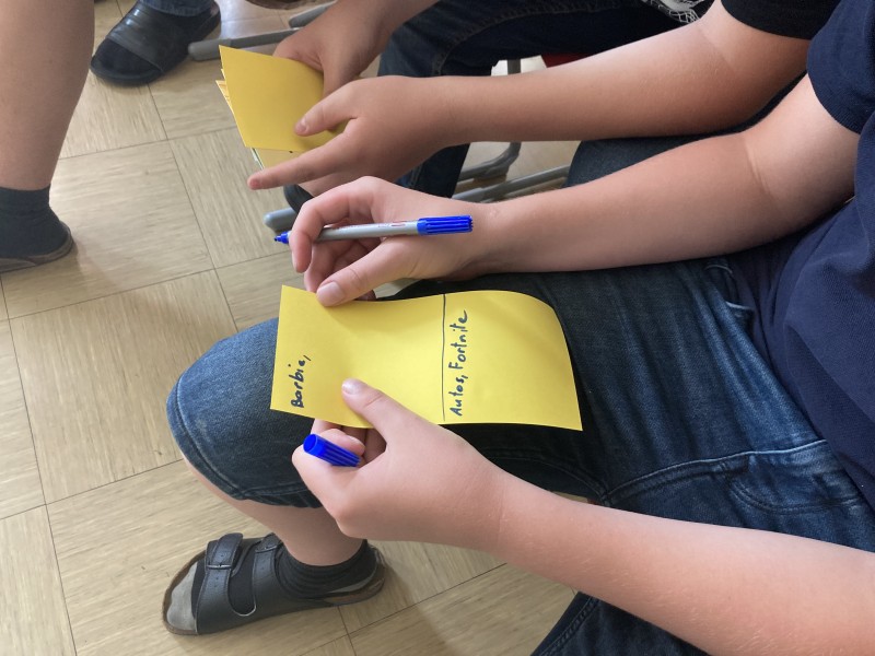 Im Workshop selbst, an dem Schüler:innen der 3. und 4. Klassen teilnahmen, wurden im Gesprächskreis, Gruppenarbeiten und mit Spielen etwa die Begriffsbildung (Stereotype, Rollenbilder, Vorbilder, Klischee,…) hinterfragt. Mit einer Gruppenarbeit sollte die Einteilung in typische Mädchen- und Jungenthemen verdeutlicht und ein Bezug zur eigenen Lebenswelt hergestellt werden.