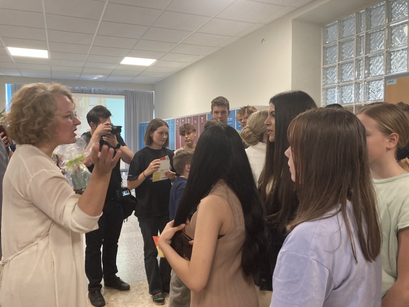 Auch Frau Bundesministerin Susanne Raab berichtete etwas über ihren Werdegang und stand den Schüler:innen auch für Fragen zur Verfügung. Einige gemeinsame Fotos und eine kleine Präsentation der Robotics – und MINT – Projekte an unserer Schule rundeten den besonderen Besuch ab.