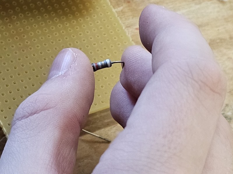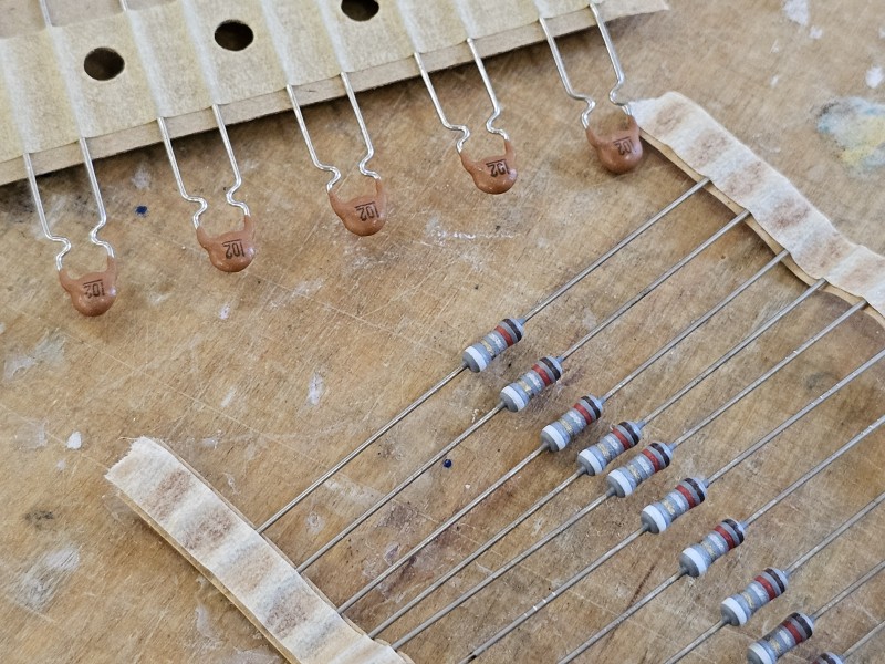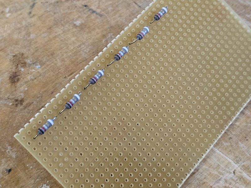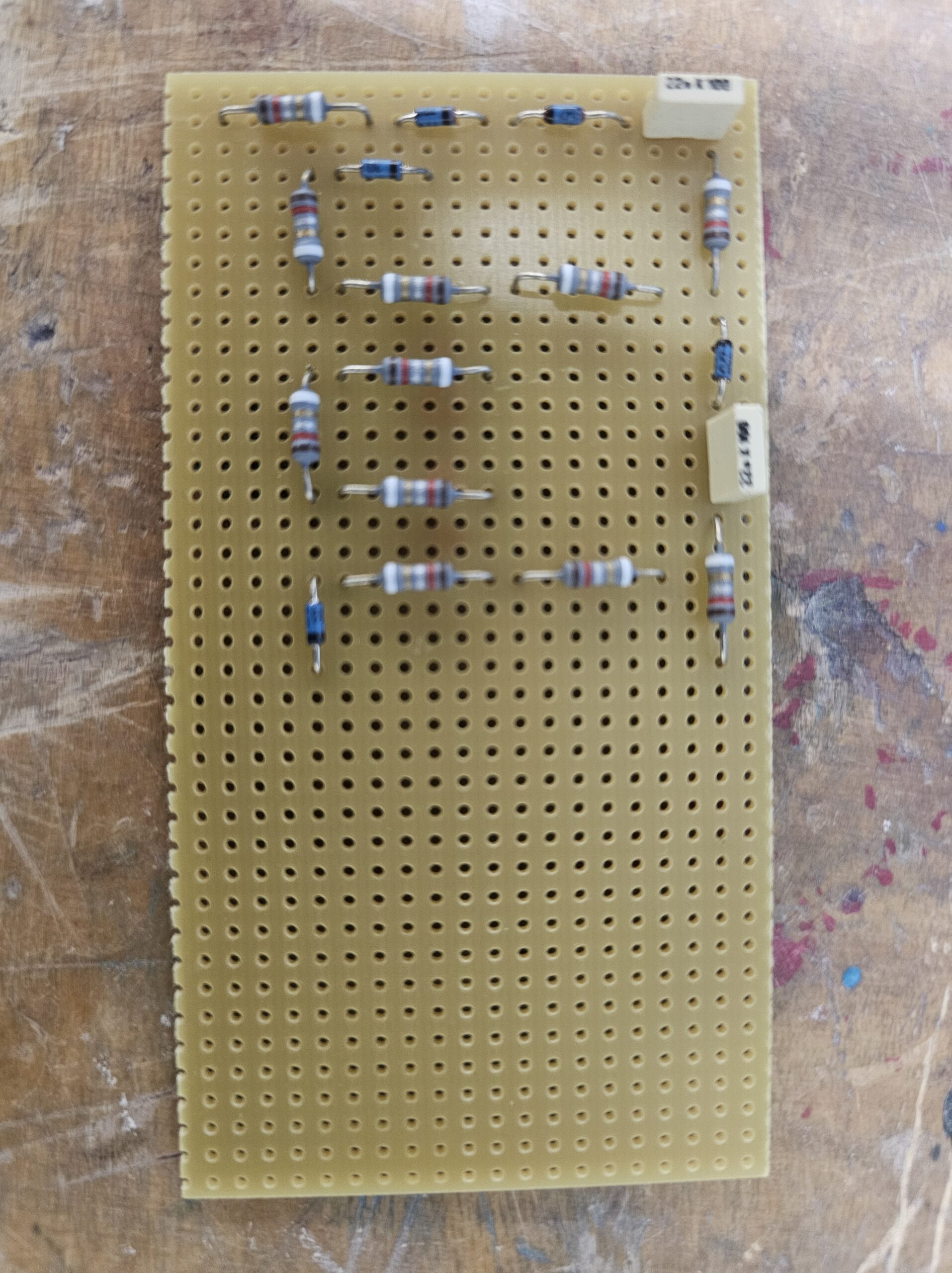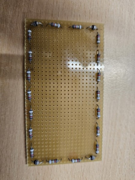 Als erstes Werkstück stand eine Platine auf dem Programm, wo noch nicht die Funktion im Vordergrund stand sondern aus verschiedensten Elektronikbauteilen ein Muster zusammengesetzt und gelötet werden sollte.
