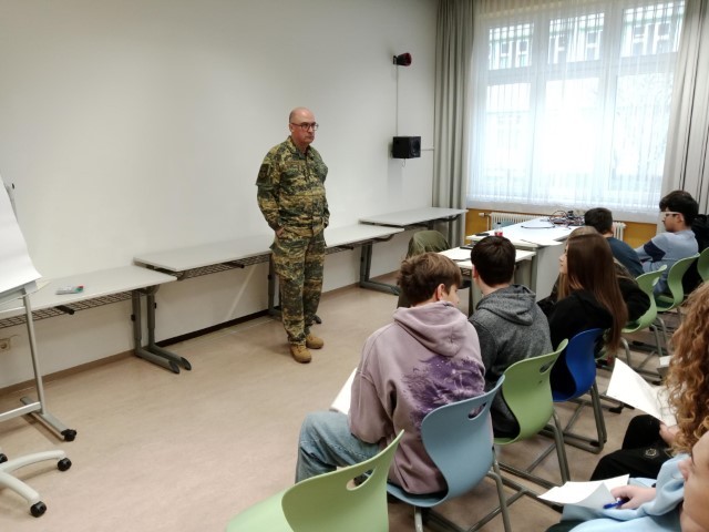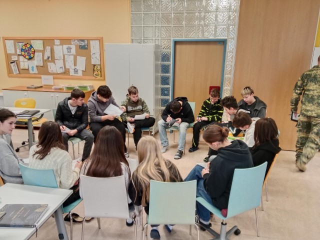 Ergänzend zum Fach „Geschichte und Politische Bildung“ fand am Freitag, den 21. November 2025, ein Workshop zu einem militärischen Schwerpunkt statt. Nach der Begrüßung teilte Oberst Schlechter die anwesenden Schülerinnen und Schüler in vier Gruppen ein, die sich mit folgenden Themen auseinandersetzten: