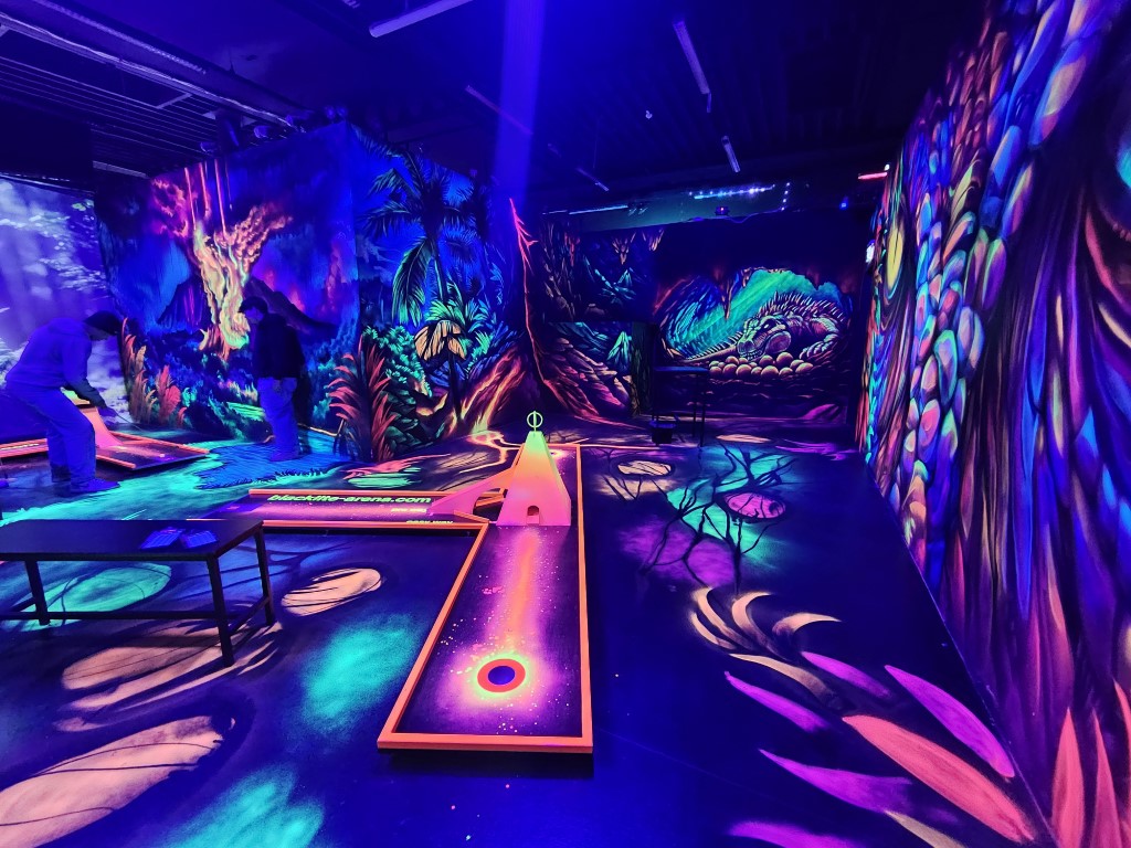 Weil auch einmal ein Ausflug ohne Bildungshintergrund oder Lernabsicht sein muss und sich die Zwickeltage vor Weihnachten dafür anboten, brach die 4Mint am Montag, den 22.12. in die Wiener Peripherie auf, um sich in der Blacklite Arena beim Minigolf zu matchen. Summa summarum: Eine kalte und windumtoste An- und Abreise, dazwischen hitzige Minigolf Matches in einer flimmernden, blinkenden und neonfarbigen Umgebung – samt Spaß und einer kleinen Stärkung beim Fast Food Service unseres Vertrauens, dessen Namen wir hier nicht nennen wollen . Ein guter Abschluss für 2025!