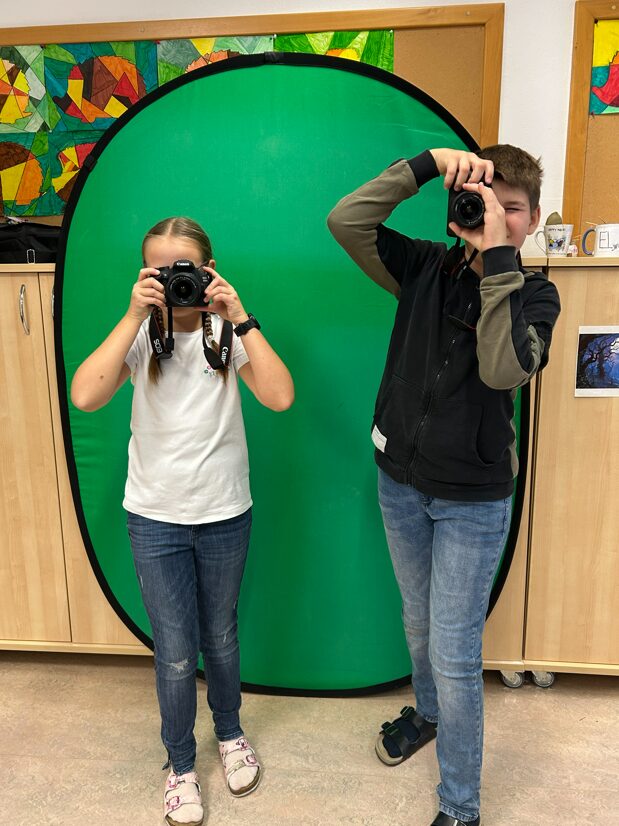 Eingeladen und koordiniert von den Kolleg:innen, die das Schuljahr über die Nahtstelle zur Volksschule betreuen durften wir uns über den Besuch der Schüler:innen der 4.Klassen der umliegenden Volksschulen freuen. Einige Stationen wie Kennenlernen der Lego Roboter oder Austesten der neuen VR Brillen sollten Einblicke in unsere MINT und Informatik Mittelschule vermitteln. Stellvertretend für alle Stationen sei hier die Greenscreen Station vorgestellt: Die Volksschüler:innen wurden von den Schüler:innen der 1MintB vor einem großen grünen Tuch (dem “Greenscreen” fotografiert, technisch gleich wie “Bluescreen”) und durften sich anschließend einen Fantasie Hintergrund auswählen. Am Computer wurde die Bilder dann vereint und schon konnten unsere Besucher sich im Dschungel oder im Weltall etc bewundern. Die fertig ausgedruckten Bilder lagen dann am Abend zur Abholung bereit!