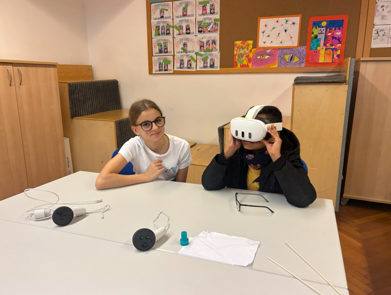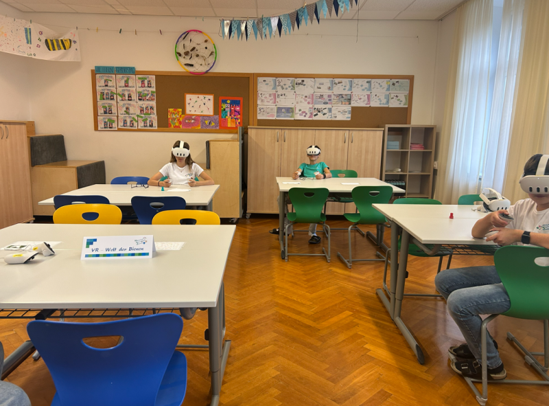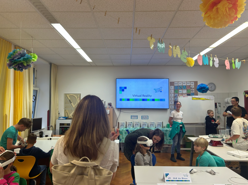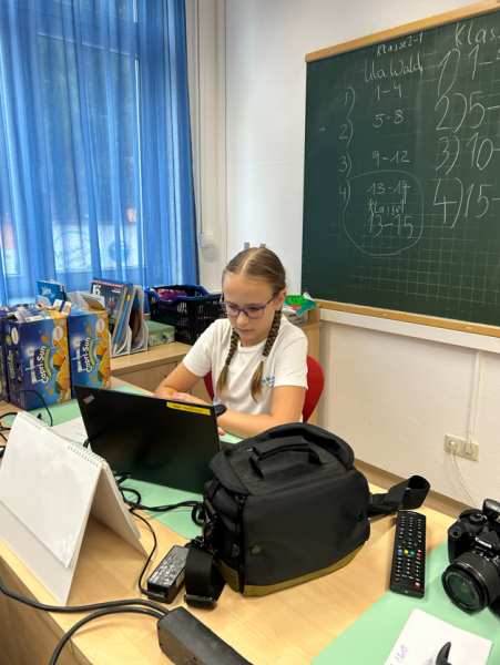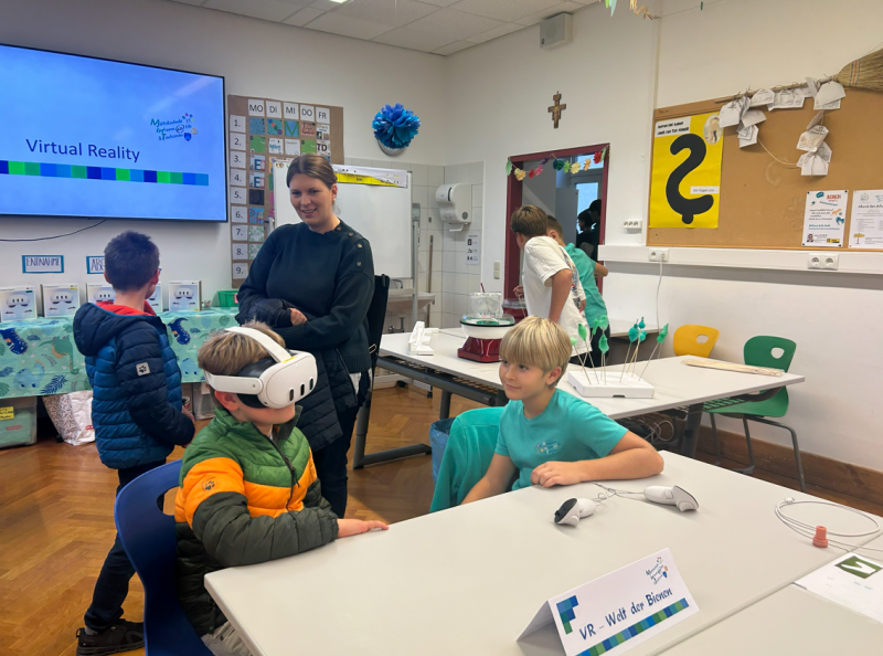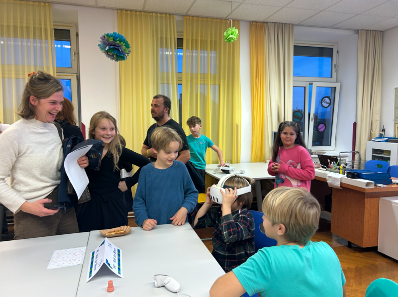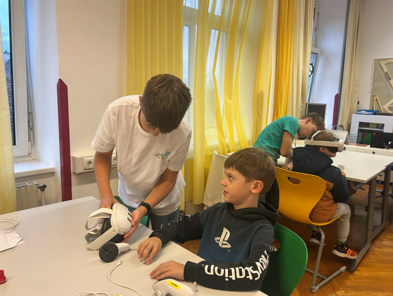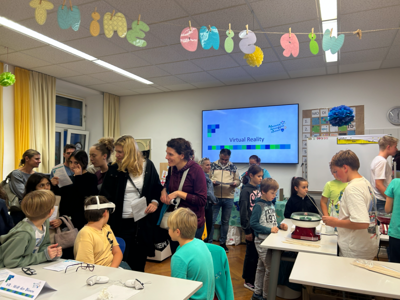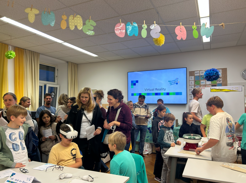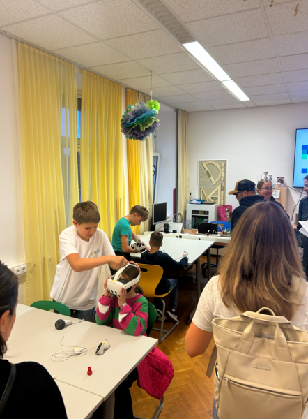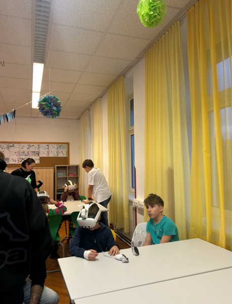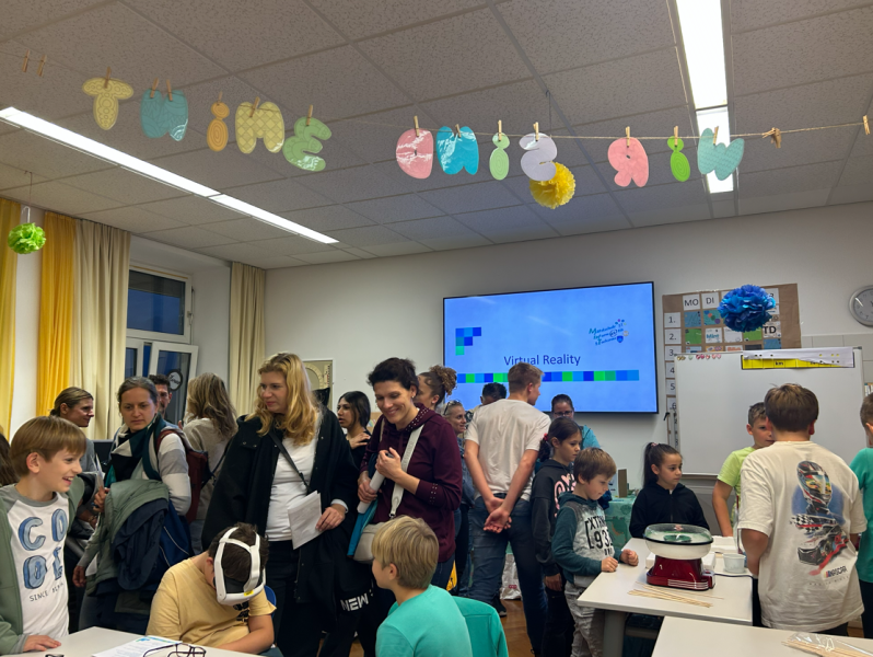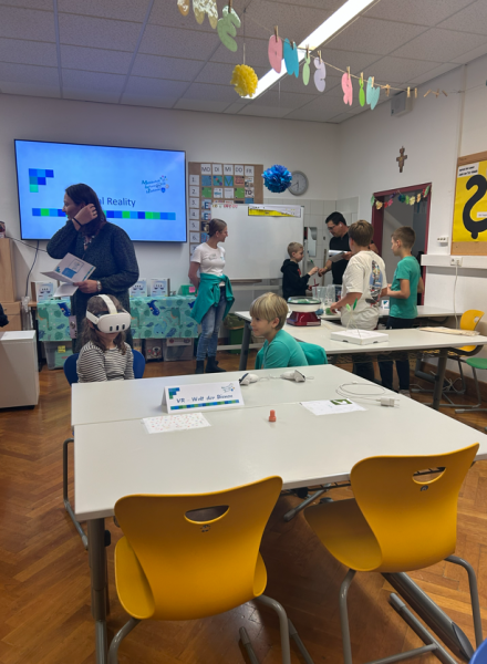 Eingeladen und koordiniert von den Kolleg:innen, die das Schuljahr über die Nahtstelle zur Volksschule betreuen durften wir uns über den Besuch der Schüler:innen der 4.Klassen der umliegenden Volksschulen freuen. Einige Stationen wie Kennenlernen der Lego Roboter oder Austesten der neuen VR Brillen sollten Einblicke in unsere MINT und Informatik Mittelschule vermitteln. Stellvertretend für alle Stationen sei hier die Greenscreen Station vorgestellt: Die Volksschüler:innen wurden von den Schüler:innen der 1MintB vor einem großen grünen Tuch (dem “Greenscreen” fotografiert, technisch gleich wie “Bluescreen”) und durften sich anschließend einen Fantasie Hintergrund auswählen. Am Computer wurde die Bilder dann vereint und schon konnten unsere Besucher sich im Dschungel oder im Weltall etc bewundern. Die fertig ausgedruckten Bilder lagen dann am Abend zur Abholung bereit!