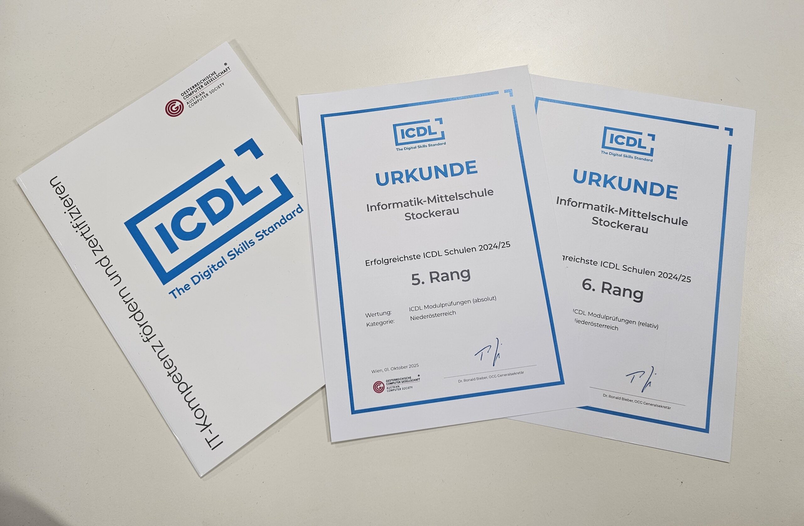 Wir freuen uns sehr, dass unsere Schule im vorigen Schuljahr unter allen am ICDL teilnehmenden Schulen Niederösterreichs den 5. (absolute Wertung) bzw. 6. Rang (relative Wertung) belegt hat!