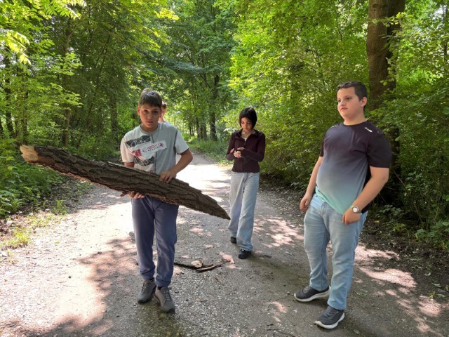Der Biologieunterricht in der 2.Klasse hat unter anderen den Wald als Schwerpunkt. Um dafür einen würdigen Abschluss zu begehen, fanden sich die 2. Klassen, 2Mint und 2eFit  Anfang Juni zusammen und marschierten in die Au. Dort gab es dann lehrreiche Spiele zum Thema Wald und Wild, wo der Spaß nicht zu kurz kam. Unter der Anleitung von Andrea Peham – Rosenberger gemeinsam mit Marion Majdan, Veronika Leser und Daniel Murtinger mussten die Schüler:innen Blätterpuzzle lösen, Tierspuren erkennen, die Höhe von Bäumen schätzen, aus Naturmaterialien ein Boot bauen und vieles mehr. Die Zeit wurde eigentlich zu knapp an diesem Waldtag in der Au!